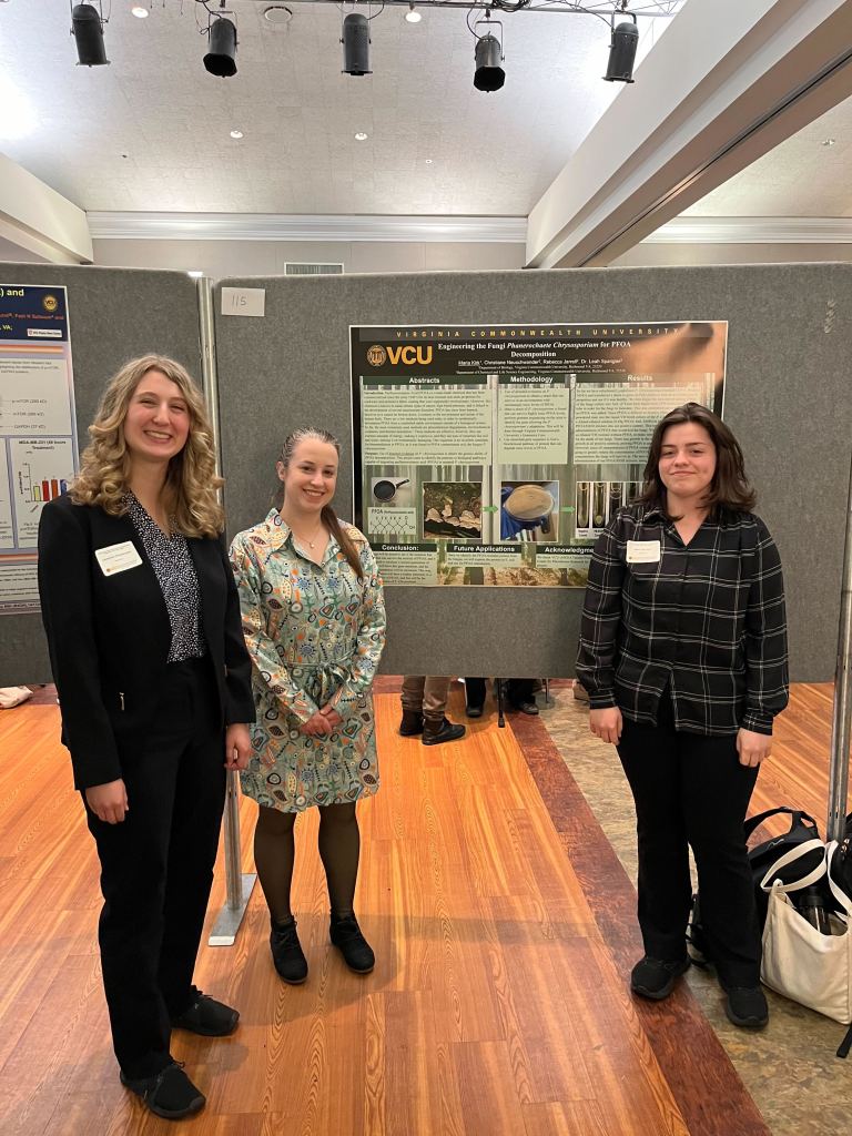 Spangler Lab undergraduates Maria Kirk, Christiane Neuschwander, and Aubrey Carey presented their research at VCU’s Annual Undergraduate Research Symposium. Great work!